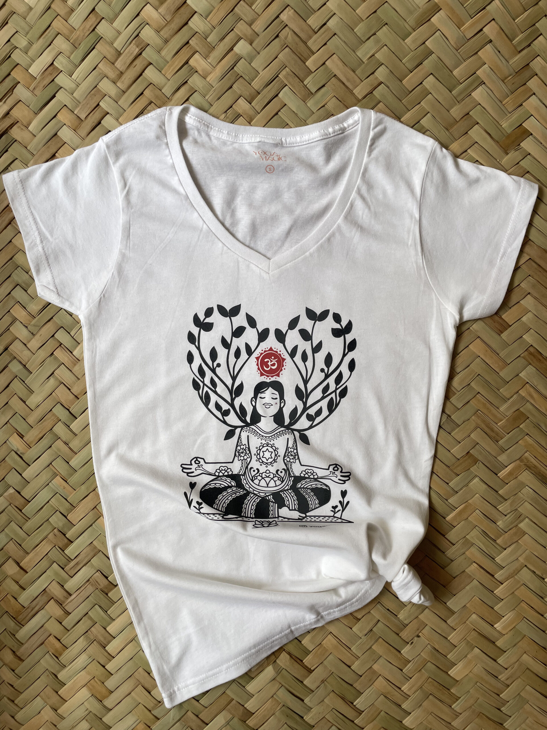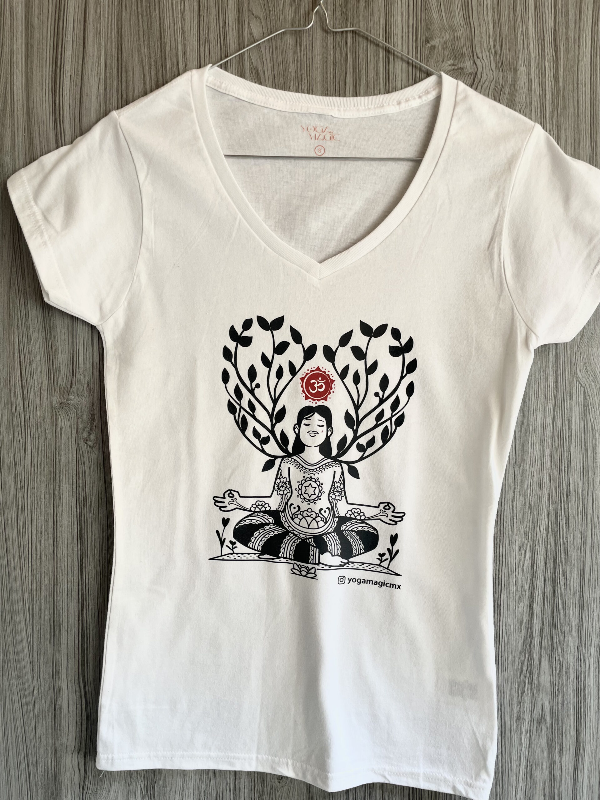 Playera DAMA Cuello V. Color BLANCO Material: 100% ALGODÓN PEINADO.