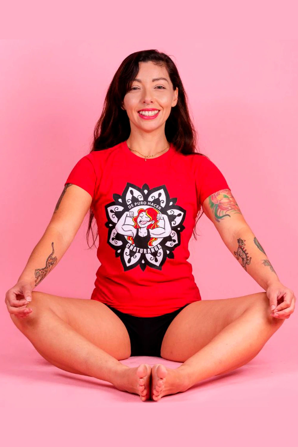 Playera DAMA TRIBEND Cuello redondo. Color Rojo Material: 50% POLIÉSTER 25% ALGODÓN 25% RAYÓN