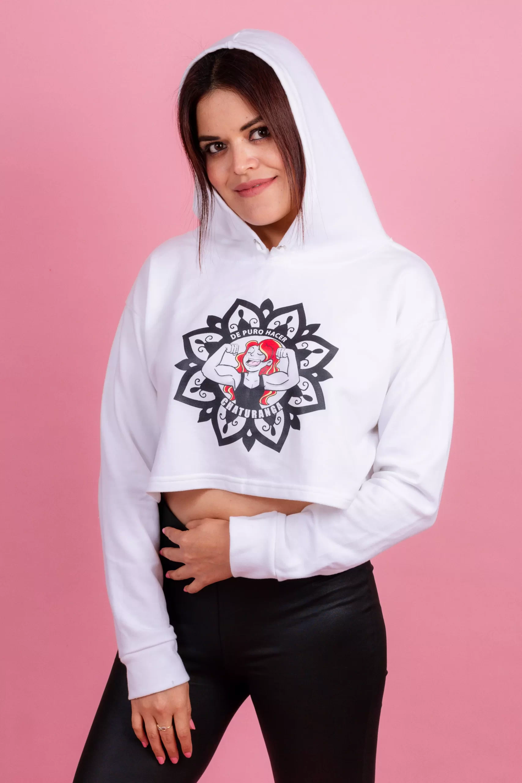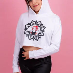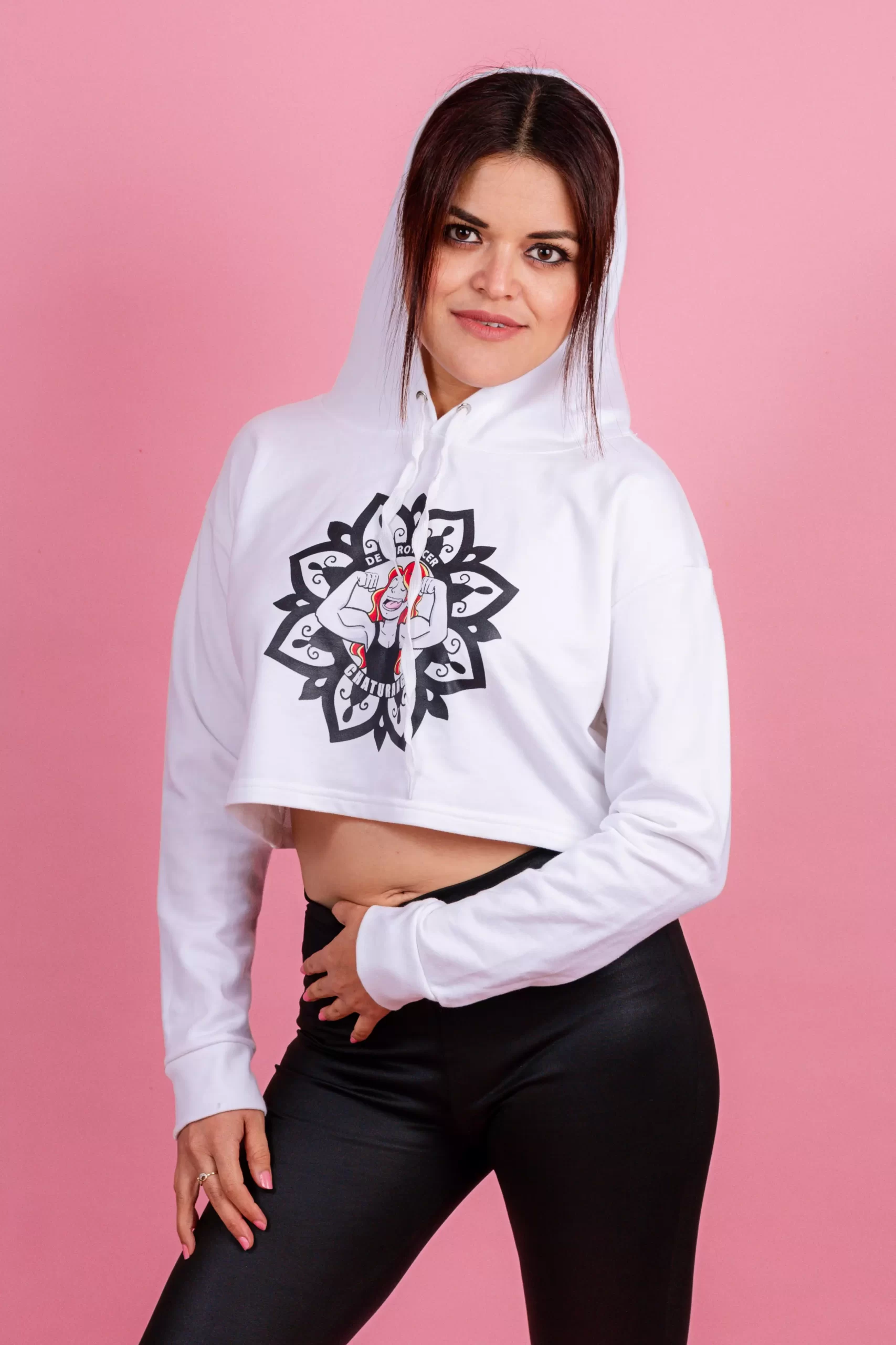 Crop Top Fressterry hot-hoodie. Color BLANCO Material: 50% ALGODÓN 50% POLIESTER